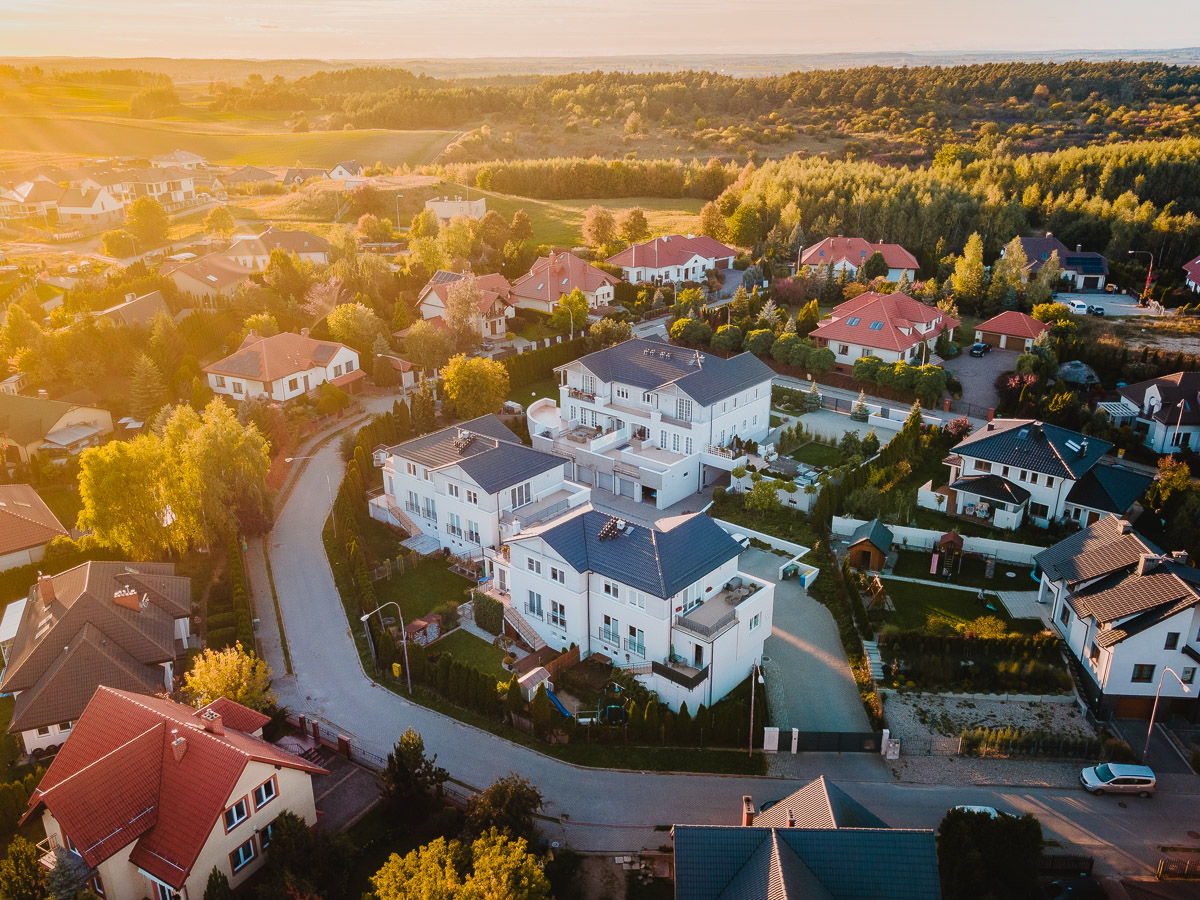 Fotografia lotnicza nieruchomości – domów, działek, osiedli. Oferta dla biur nieruchomości oraz deweloperów.